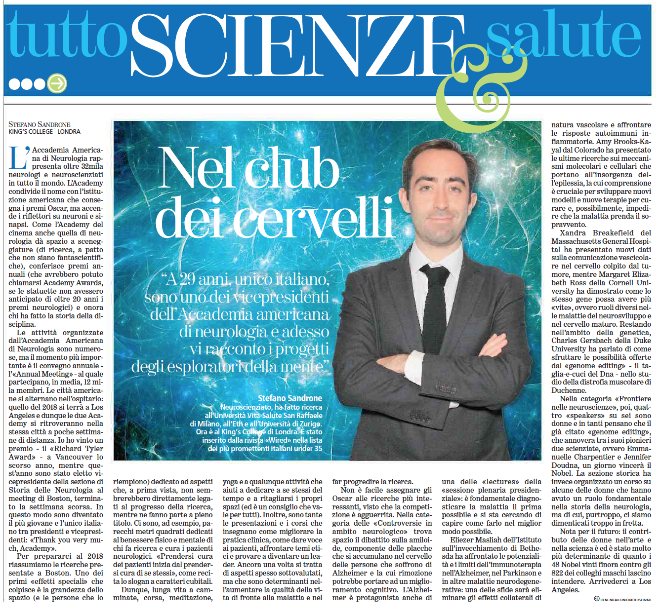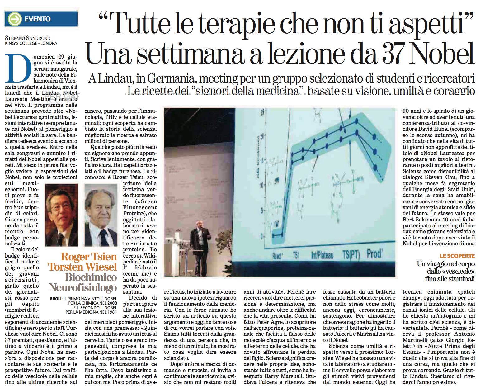 In 2014 I was selected as a young scientist at the 64th Lindau Nobel Laureate Meeting in Physiology and Medicine (attended by 37 Nobel Laureates and 600 young scientists worldwide). For this, I have been included in Wired magazine’s list of ‘promising Italians under 35’.